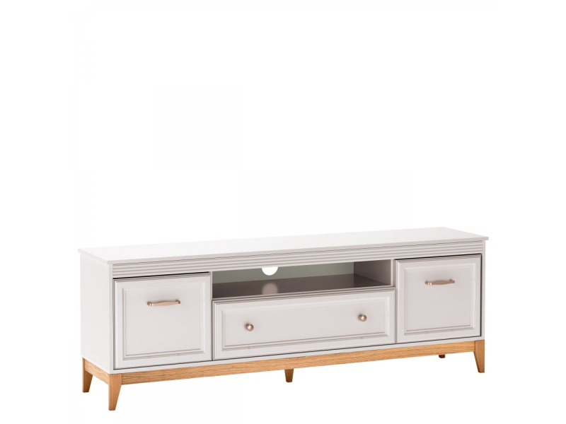 Zlato-měděné kovové úchytky jsou dalším dekorativním prvkem. Krásný tvar je doplněn funkčností. Prostorné skříňky, zásuvka a otevřená police pojmou veškeré vaše nezbytné televizní příslušenství a udrží váš obytný prostor organizovaný. Televizní stolek Stebin SE09 dodá kouzlo modernímu, klasickému nebo skandinávskému obývacímu pokoji.