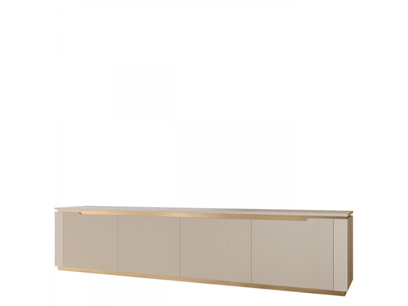 Televizní stolek Frimgo 4K je ztělesněním moderní elegance. Místo tradičních úchytů mají čela zaoblené hrany, které dodávají stolu skutečně minimalistický vzhled. Čtyři prostorné skříňky nabízejí dostatek prostoru pro televizní vybavení, kabely a příslušenství, což vám umožní udržet si pořádek v obývacím pokoji.
