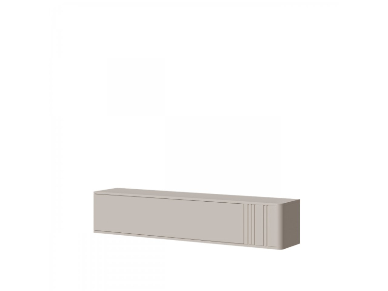 Další výhodou tohoto nástěnného televizního stolku je flexibilní polohování přední části – frézovaný panel lze umístit na levou nebo pravou stranu, čímž se přizpůsobí designu místnosti. Tento model se perfektně hodí k moderním doplňkům a vytváří v obývacím pokoji ucelenou multimediální zónu.