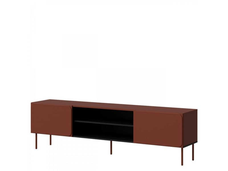 Tento moderní model nabízí prostorný úložný prostor. Základna se skládá z polic na televizní vybavení, zatímco skříňky s dvířky poskytují úložný prostor pro nezbytné příslušenství.