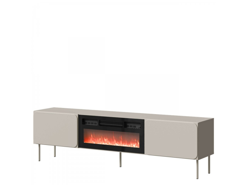 Televizní stolek Tuxano s krbem se vyznačuje jednoduchým, elegantním designem a tlumenými barvami, které dokonale doplňují moderní interiérový design. Hladké přední strany bez úchytek zdůrazňují minimalistický charakter kusu nábytku. Konstrukce spočívá na štíhlých nohách, které dodávají nádech vizuální lehkosti.