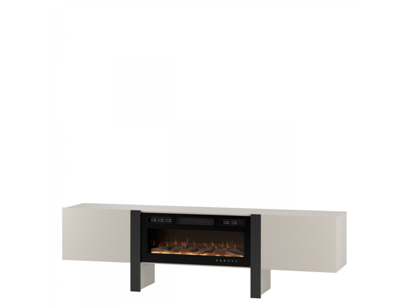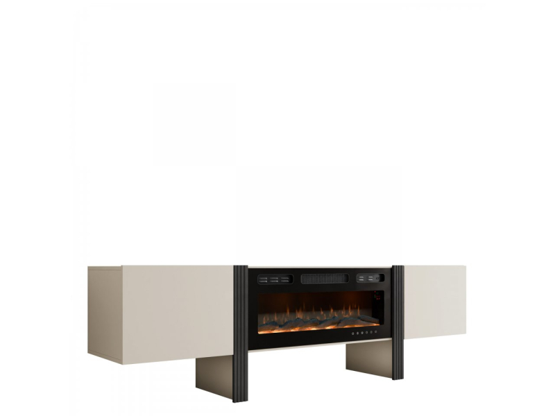 Moderní televizní stolek Zalvigo 05 s elektrickým krbem vytvoří ve vašem obývacím pokoji jedinečnou atmosféru. Jeho minimalistický design v kombinaci s kontrastními dekorativními prvky dodá místnosti výrazný vzhled, který upoutá pozornost každého. Tento model je vylepšen elektrickým krbem s realistickým efektem plamene a nastavitelným nastavením teploty.