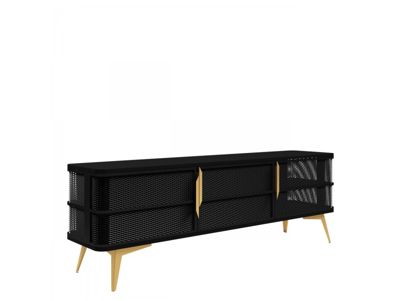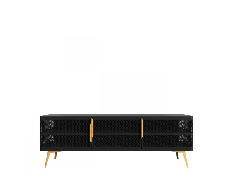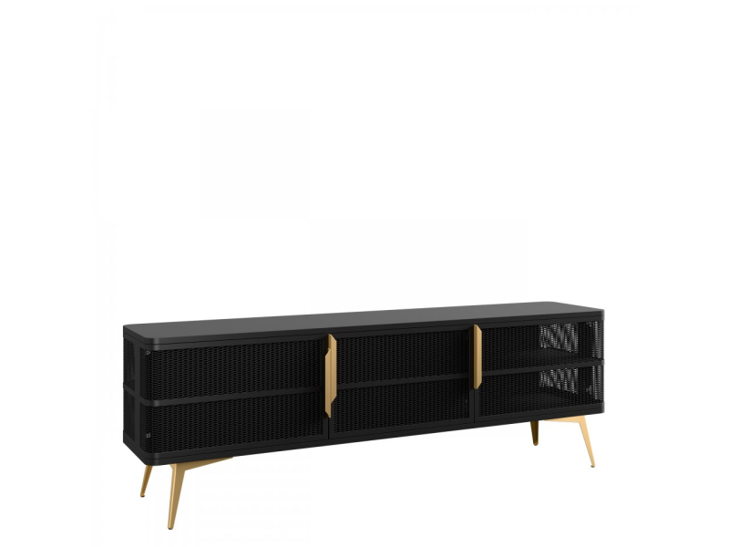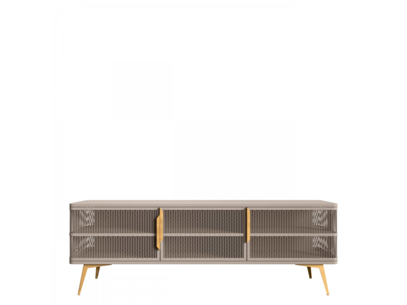 Moderní TV skříňka Bezor spojuje funkčnost s dekorativním designem. Propracované čelní strany a výrazné dekorativní úchytky dělají ze skříňky nejen pozadí pro televizor, ale plnohodnotný prvek designu obývacího pokoje. Vizuálně lehká konstrukce přitahuje pozornost a dodává interiéru sofistikovaný charakter.