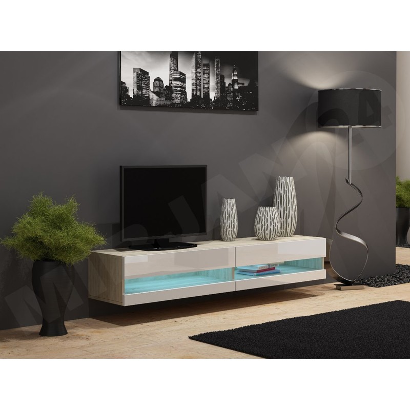 TV skříňka Zigo New 180 je určena pro nadšence moderního stylu. Můžeme ji zavěsit v jakékoli výšce. LED osvětlení, které je k dispozici jako doplňková možnost, vytváří jedinečný efekt, zvláště když jsou všechna světla zhasnutá a LED osvětlení bude hlavním zdrojem osvětlení. Přední části s vysokým leskem dodávají eleganci.