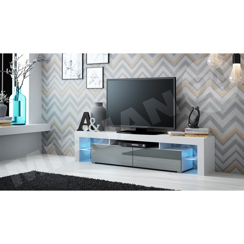 Molo je moderní TV skříňka designového tvaru. Skříňky uspořádané ve střední části nábytku jsou obklopeny širokou deskou. Toto řešení je mimořádně efektivní a příznivě zdůrazňuje hodnotu nábytku.