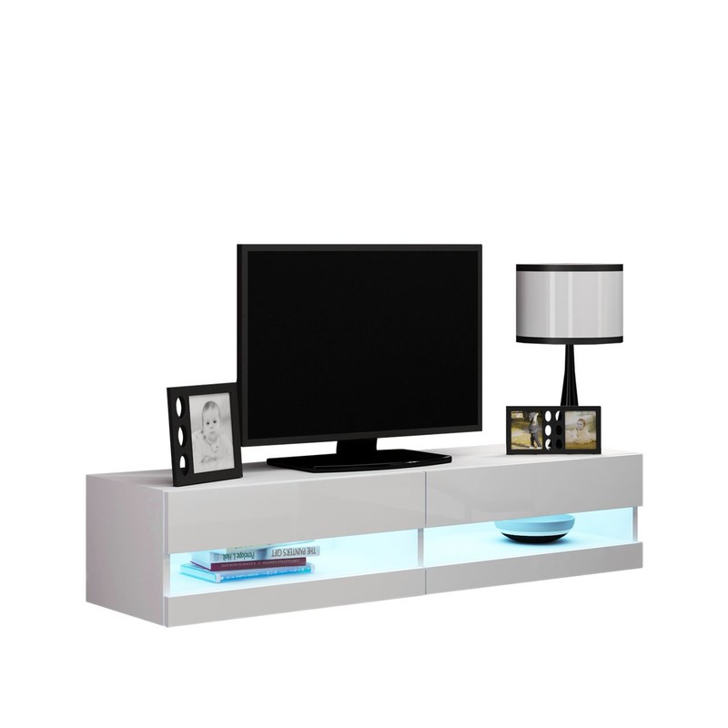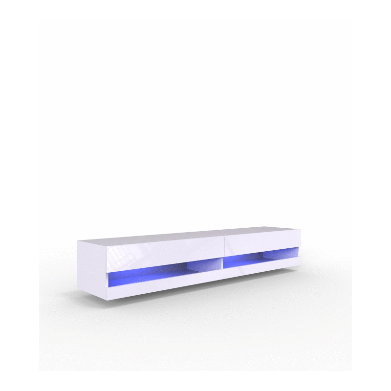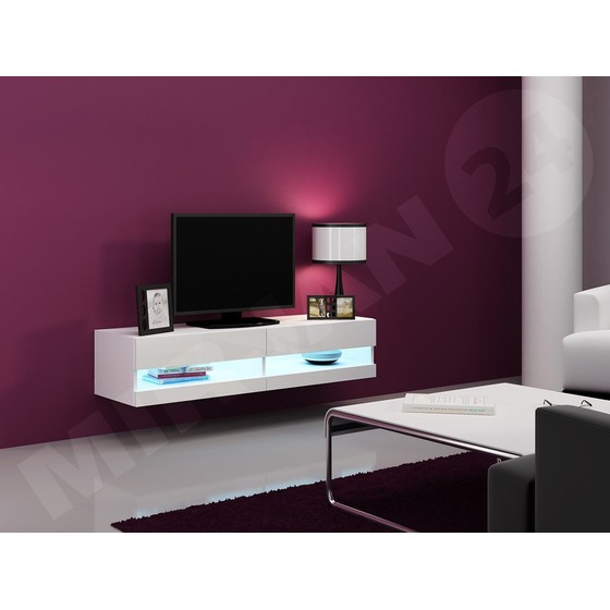 Závěsná TV skříňka nemá úchytky a jako doplňková možnost je k dispozici LED osvětlení.
