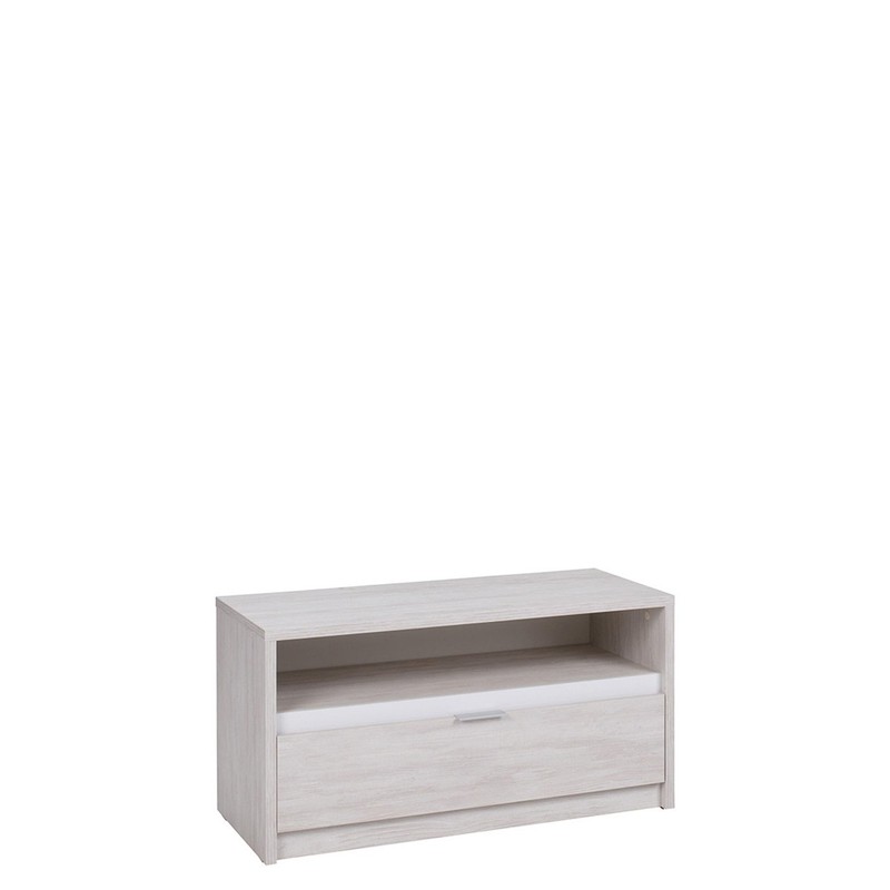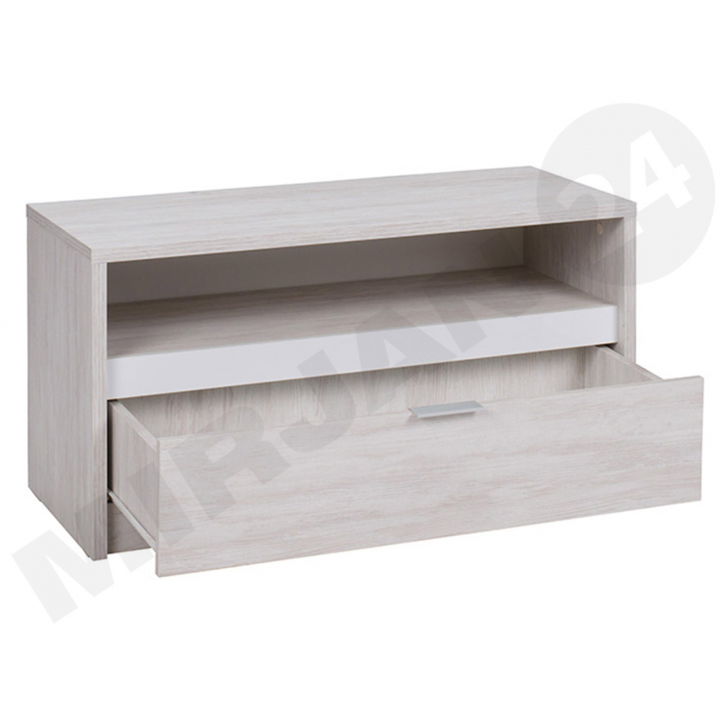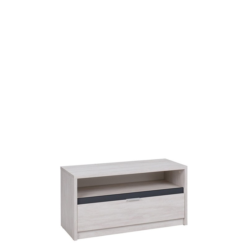 TV skříňka je vybavena poličkou na dekodér nebo konzoly, pultovou deskou - ideální pro televizor a zásuvkou, vytvořenou na skrytí těch nejdůležitějších věcí.
