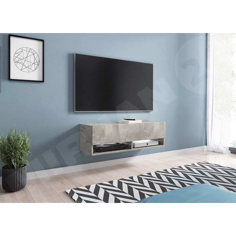TV stolek Adenik 100 je moderní návrh pro malý obývací pokoj, který je určen k zavěšení na stěnu. Tv stolek má dvě zatvořené skříňky a dvě otevřené police, na které můžete umístit například televizor. TV skřinka Adenik se hodí zejména k modernímu vybavení.