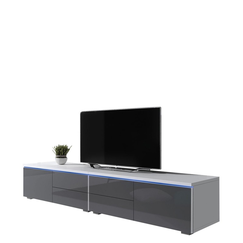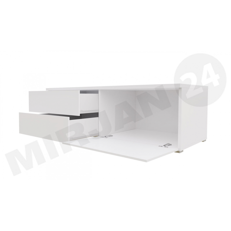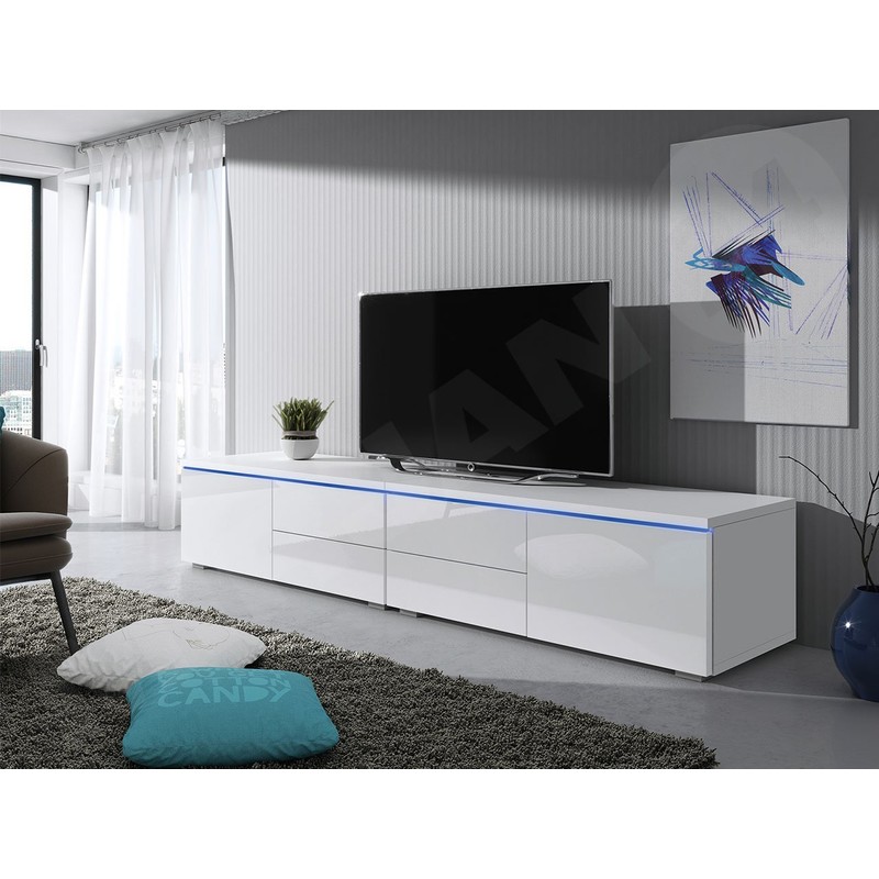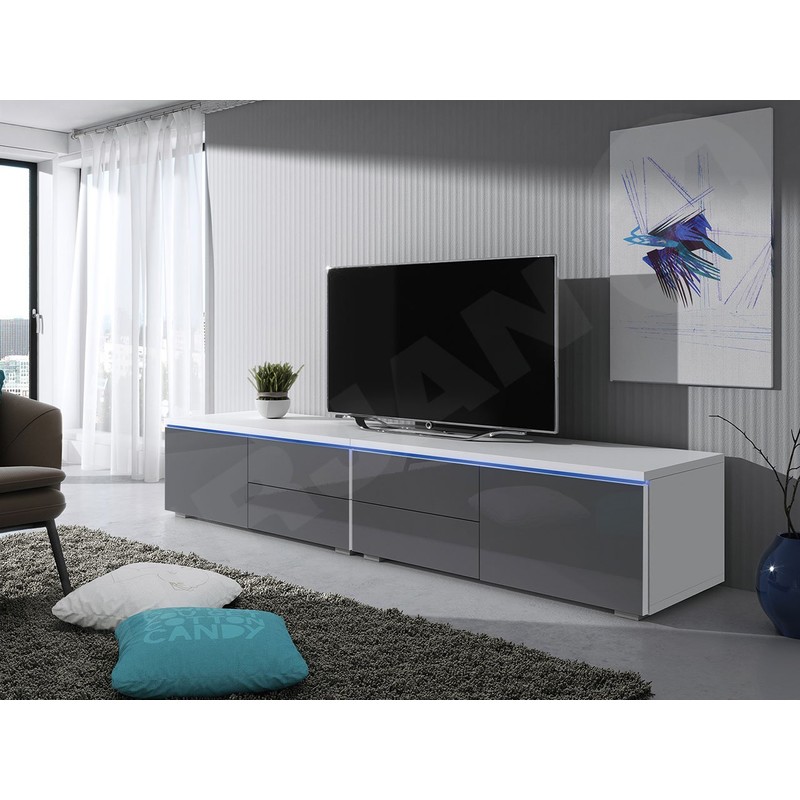 TV stolek Cleo XI Double L+P je sestava dvou TV skříněk, vybavená zásuvkami a skříňkami. Dvířka mají moderní systém otevírání "push to open", který spočívá v lehkém stlačení dvířek k jejich otevření. TV skříňky mají možnost výběru barev. Jejich dveře jsou mají lesk, který dokonale zapadne do moderního designu interiéru. TV skříňky jsou vybaveny LED osvětlením, díky kterému interiér nabude designový charakter.