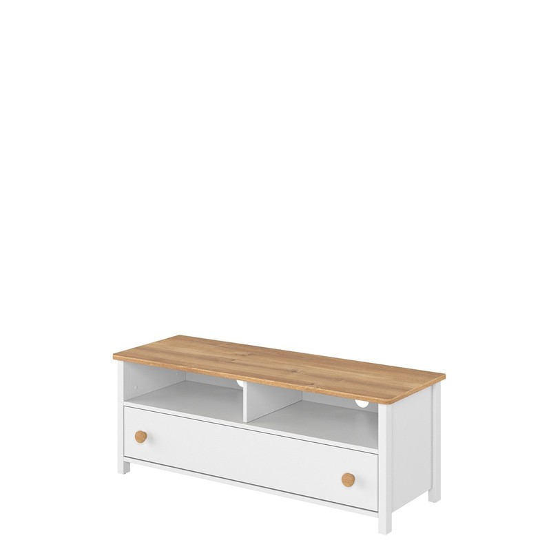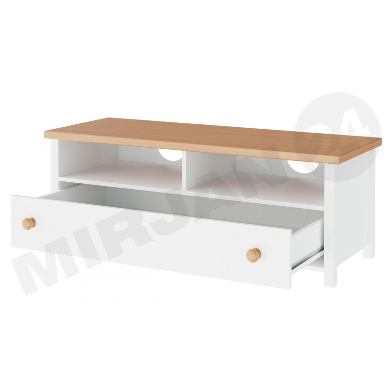 Promyšlená konstrukce televizní skříňky Story SR13 je přizpůsobena rozměrům a designu moderních televizorů. Pro set top box a reproduktory lze použít dvě velké otevřené police. Prostorná zásuvka bude zase fungovat jako praktické úložiště pro disky a dálkové ovladače. Televizní stolek má také speciální výřezy pro skrytí kabelů.