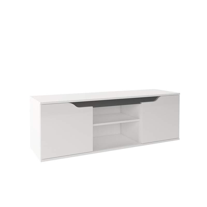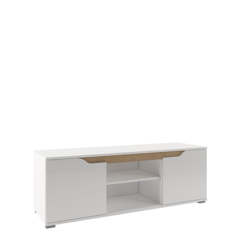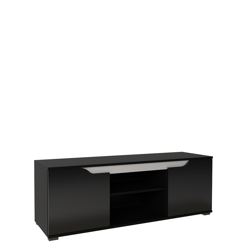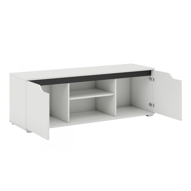 Televizní stolek má dvě skříňky, které můžete otevřít pomocí systému PUSH TO OPEN. Nedostatek tradičních úchytů zdůrazňuje moderní charakter stolku.