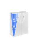 Nízká vitrína Ozzy má originální a zajímavý design, který je skvělý pro moderní interiéry. Dominantou nábytku je zasklení přední části, která zapadá do rohové části a dodává 3D efekt. Kromě toho budou položky na skleněných policích dále zvýrazněny díky použitému LED osvětlení.