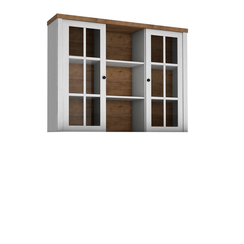 Vitrína Patty se vyznačuje zajímavou kombinací barev, která je založena na čistě bílém a teplém dubovém zbarvení. Celek se týká stylu rustikálního a provensálského, který dodá obývacímu pokoji nebo jídelně jedinečný charakter.