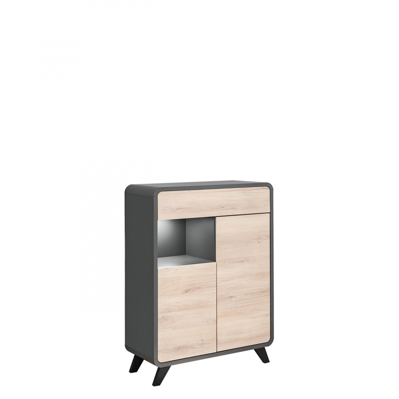 Stylová vitrína Ezekiel je módním doplňkem obývacího pokoje zařízené v souladu s nejnovějšími trendy v interiérovém designu. Designérské barvy, optimální tvar a pečlivě promyšlené uspořádání odkládacích složek jsou jen několika z vlastností, které charakterizují malou výkladní skříň.