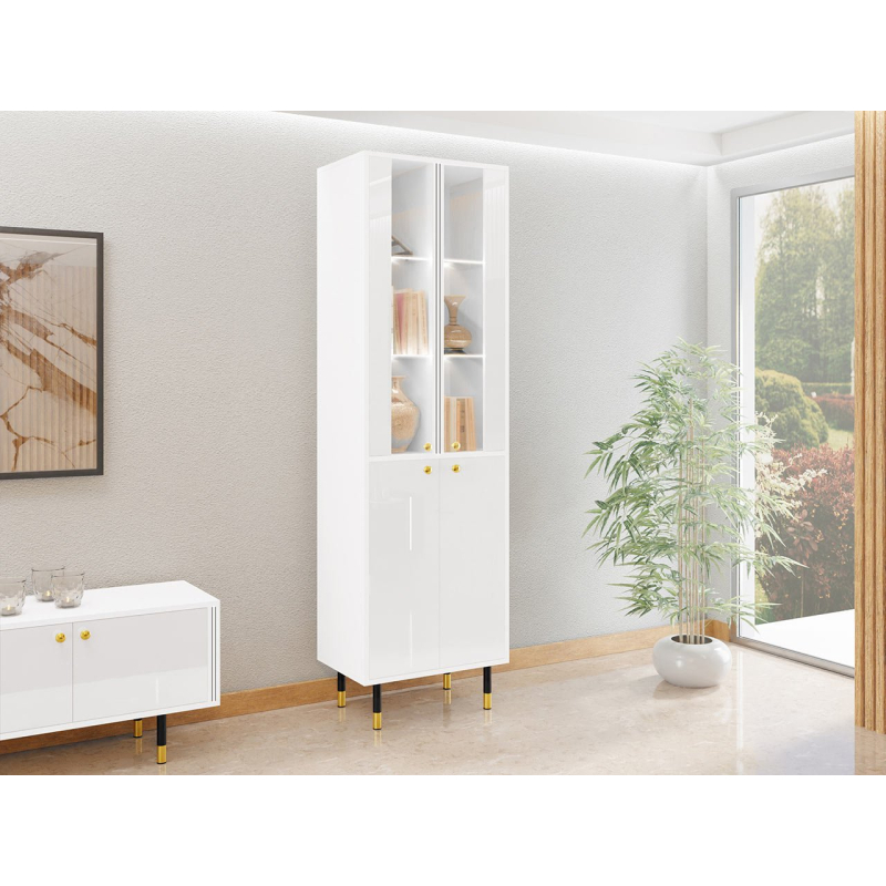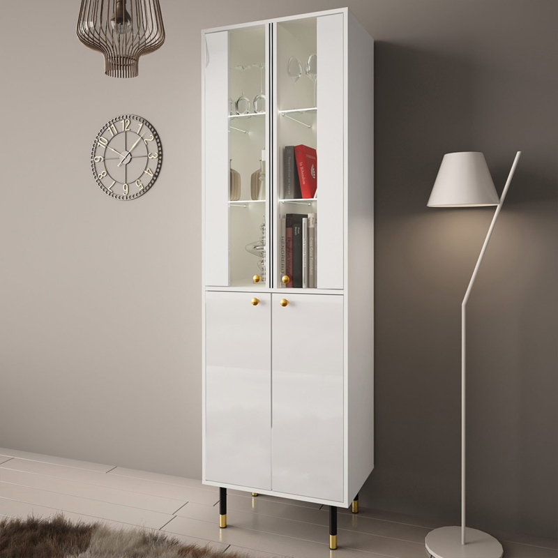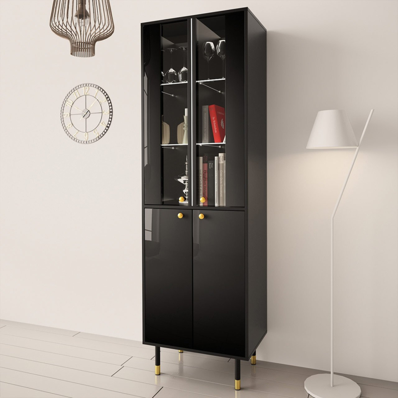 Elegantní vitrína Wiastan 05 do obývacího pokoje je jedinečnou dekorací pro každé zařízení. Hluboké barvy, lesklá povrchová úprava a jemné úchyty tvoří řadu prvků zdůrazňujících jedinečný styl nábytku. Charakteristickým rysem jsou vysoké nohy. V praxi dodávají vitríně optickou lehkost a zároveň umožňují udržovat celou podlahu uklizenou.