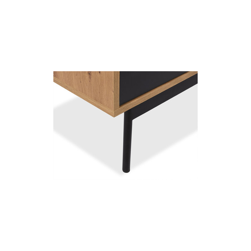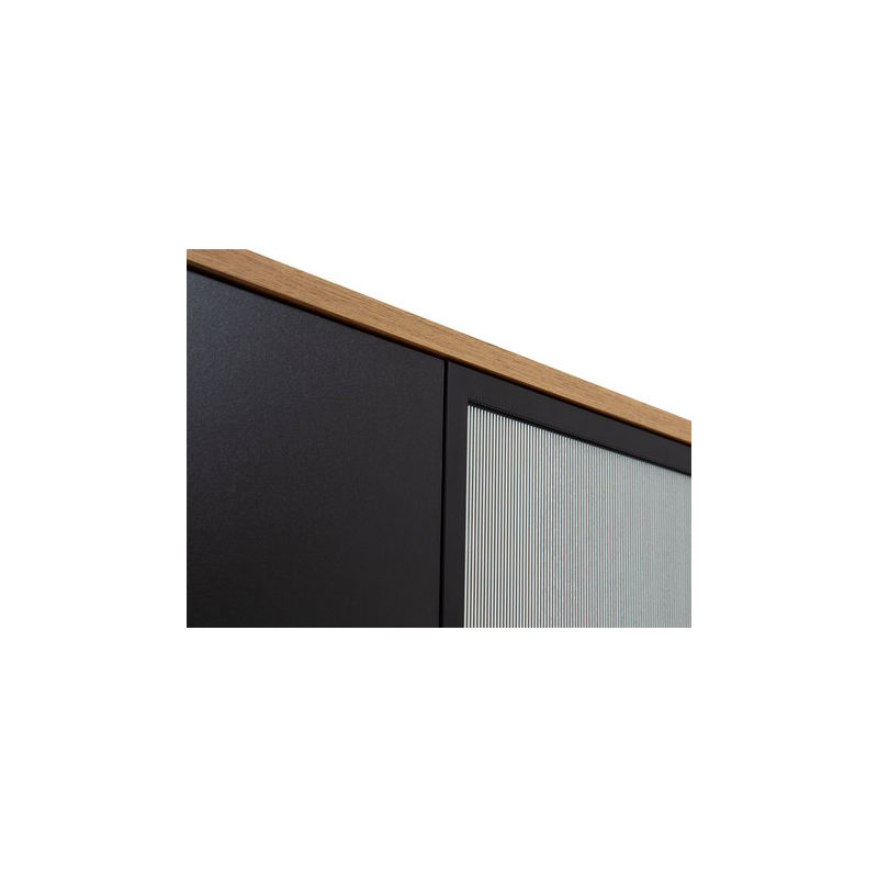 Jedním z poznávacích prvků komody Brulpin 2D jsou dvířka částečně překrytá károvaným sklem. Tento jemný detail dodává nábytku jedinečný vzhled a jemný světelný efekt. Odlesky světla na skle vytvářejí zajímavý kontrast se zbytkem povrchové úpravy.