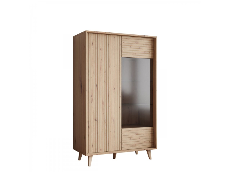 Stylová vitrína Trikso 2D kombinuje přírodní vzhled s funkčností. Nabízí dostatek úložného prostoru. Integrovaná uzavřená část vám umožní mít věci po ruce, ale ne nutně na očích. Vitrína se skleněnou přední stranou vám také umožní vystavit porcelán, sklo nebo vaše oblíbené knihy.