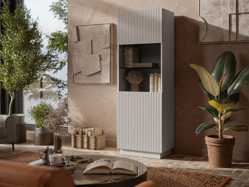 Stylovým doplňkem v obýváku je vitrína Ceroza 1D. Její drážkované přední strany dodávají nádech elegance - jeden z oblíbených detailů posledních sezón. Jejich jednoduchost a elegance dokonale doplňují interiéry od moderních až po glamour, jakož i ty inspirované nadčasovou klasikou.