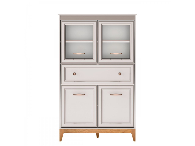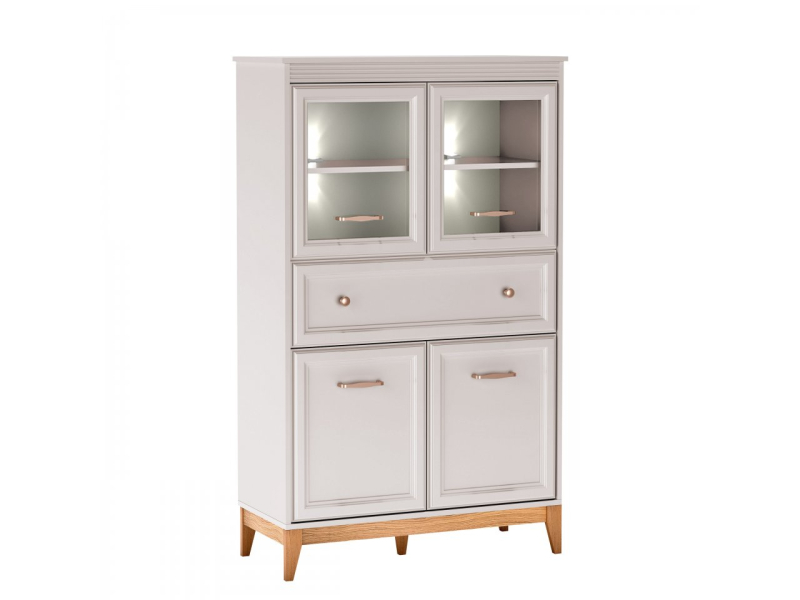 Prosklení je vyrobeno z tvrzeného, čirého skla. Volitelné LED osvětlení, které je k dispozici za příplatek, může dále vylepšit interiér vitríny. Tento model je ideální do obývacích pokojů a jídelen.