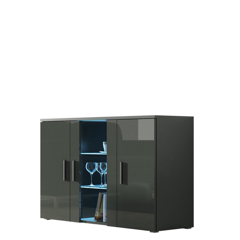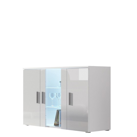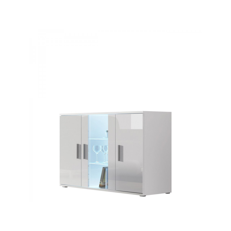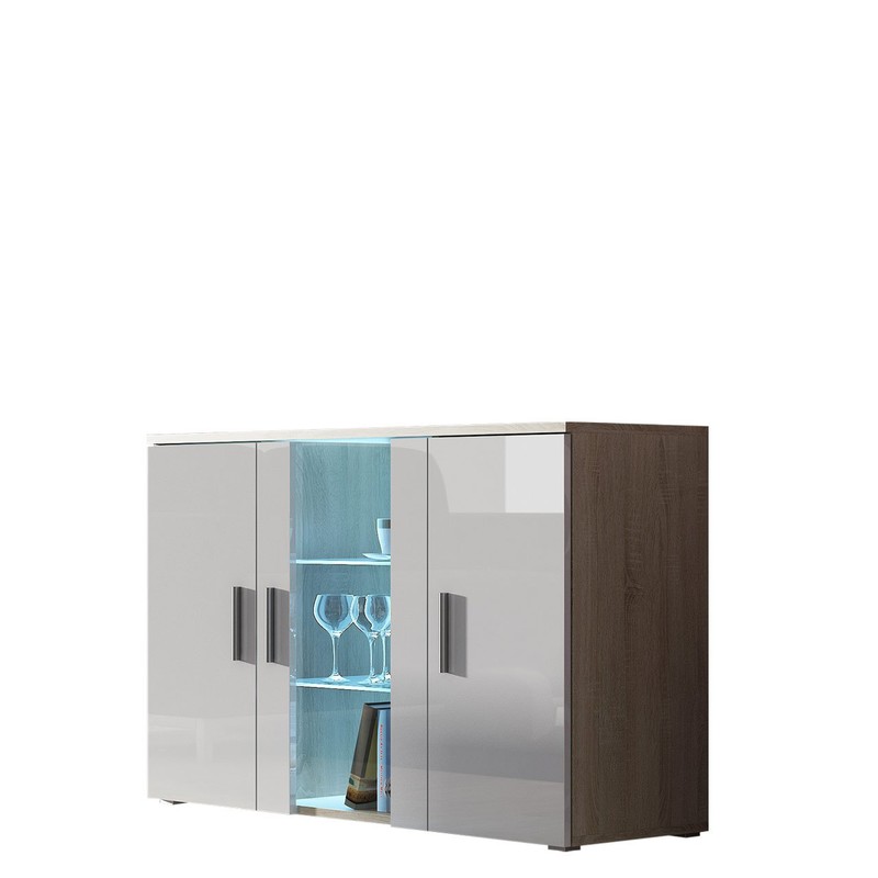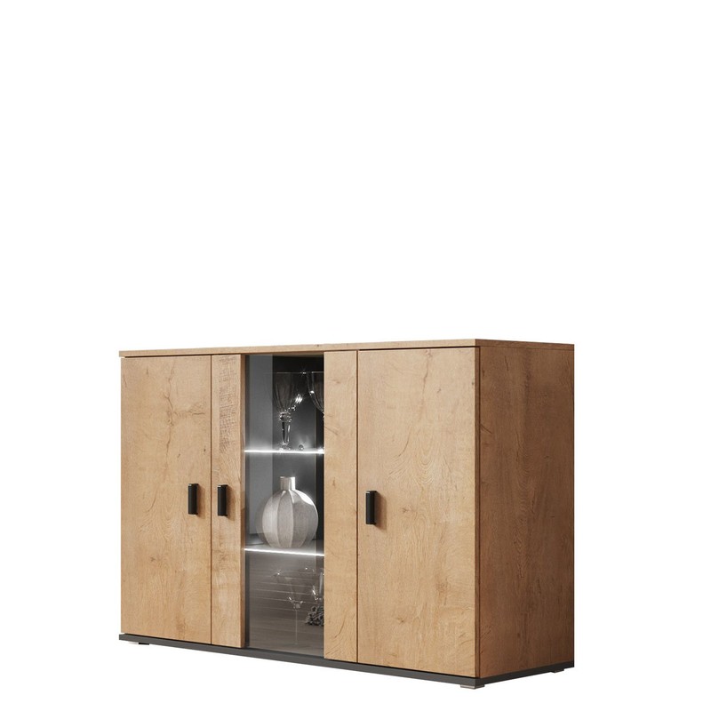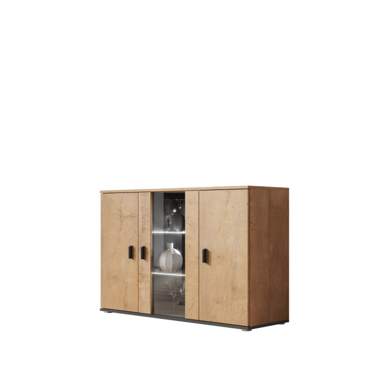 Moderní vitrína Boho B7 je model, který poskytne dostatek úložního prostoru pro Vaše doplňky a drobnosti. Komoda má tři skříňky, dvě z nich mají vestavěné klasické čelní strany, zatímco střední část komody má skleněnou přední stranu se skleněnými policemi. Pokud chcete vitríně dát ještě modernější charakter, přiobjednejte si k ní LED osvětlení.