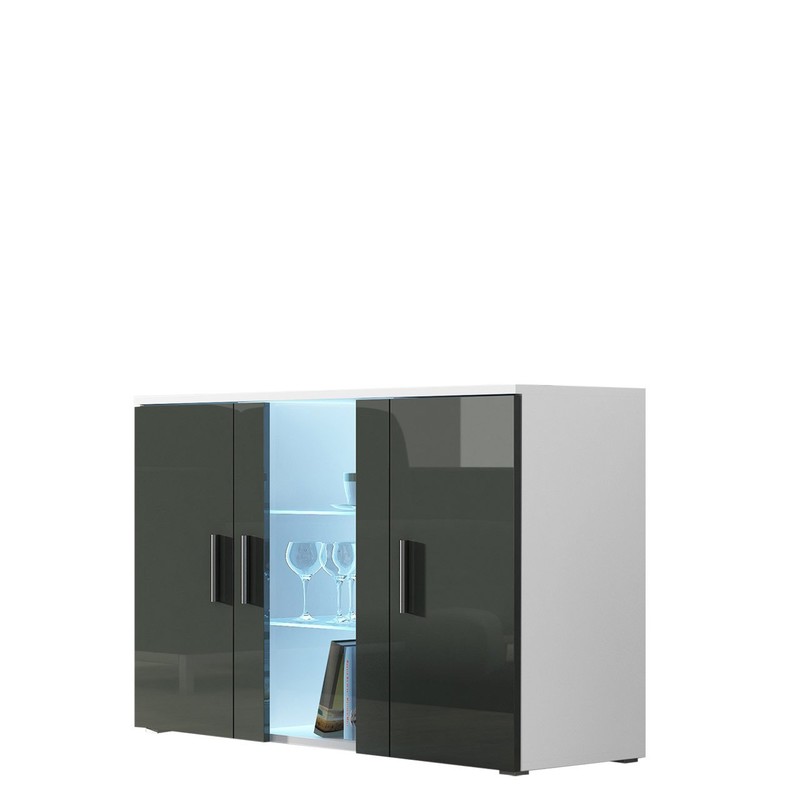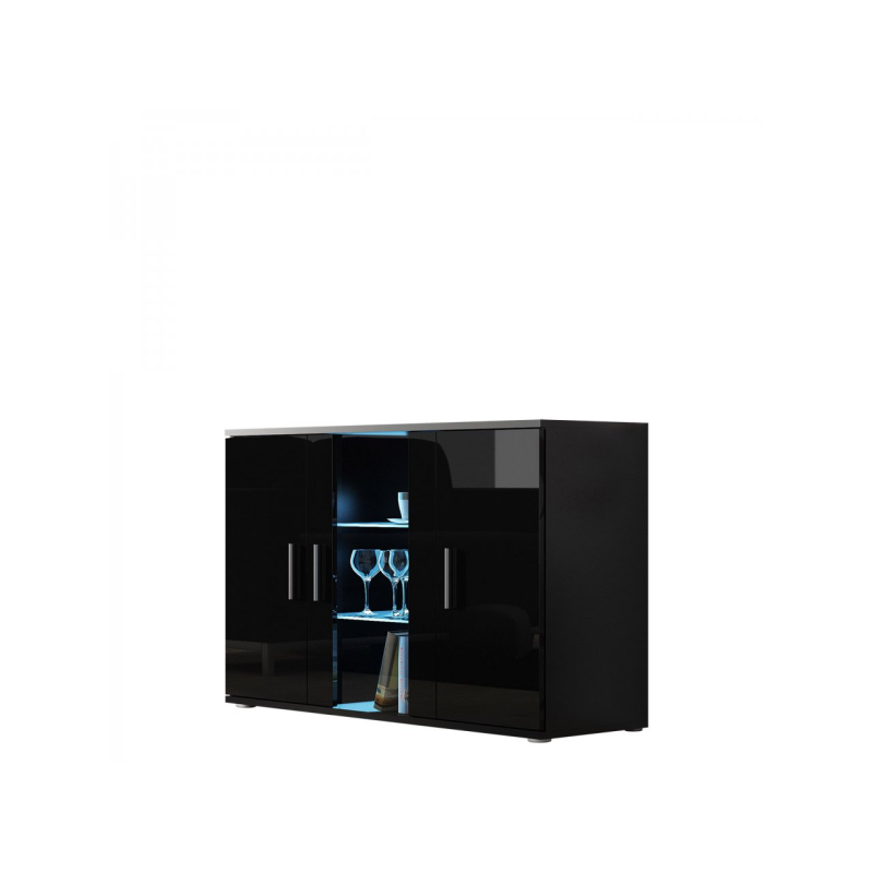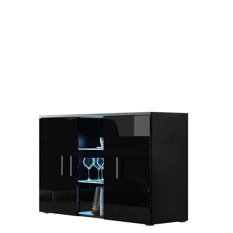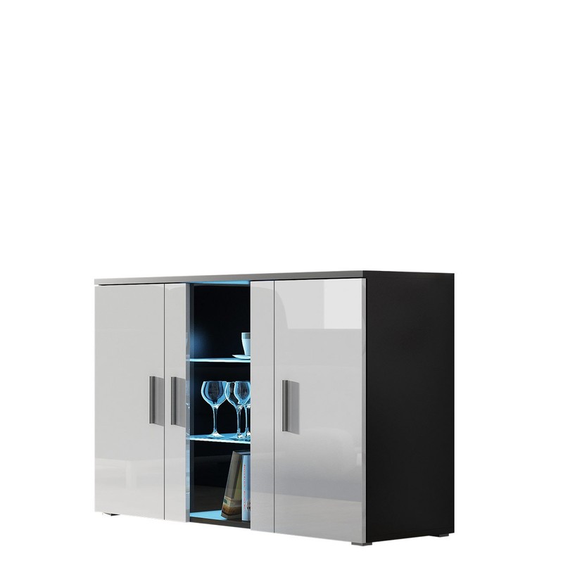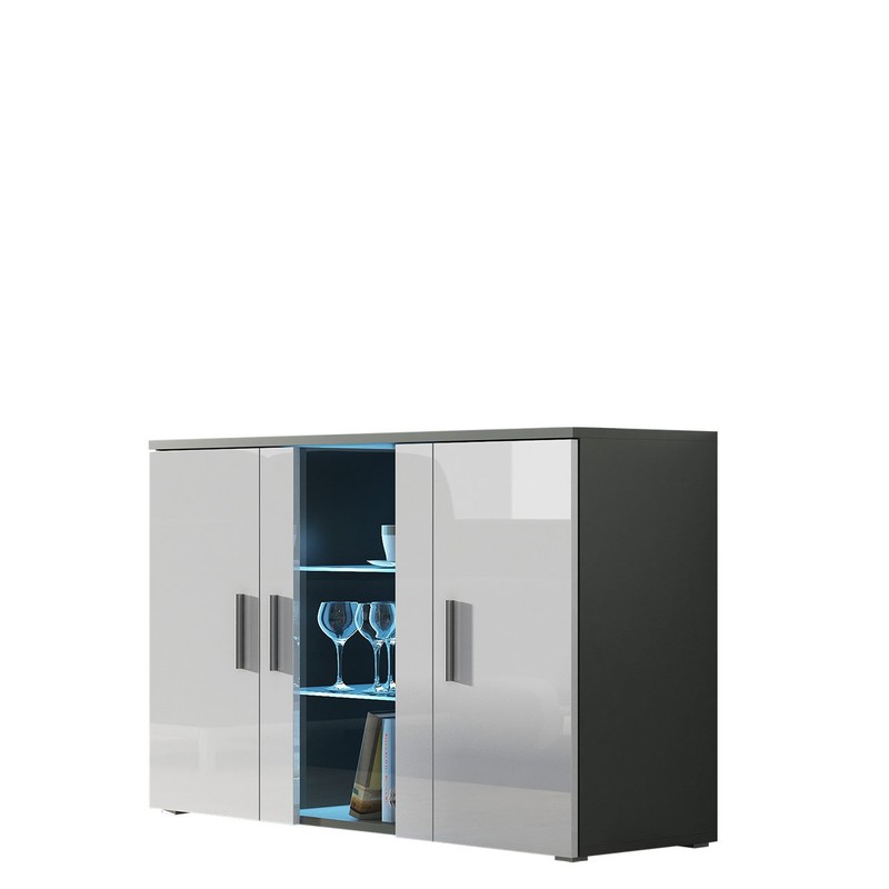 Moderní vitrína Boho B7 je model, který poskytne dostatek úložního prostoru pro Vaše doplňky a drobnosti. Komoda má tři skříňky, dvě z nich mají vestavěné klasické čelní strany, zatímco střední část komody má skleněnou přední stranu se skleněnými policemi. Pokud chcete vitríně dát ještě modernější charakter, přiobjednejte si k ní LED osvětlení.