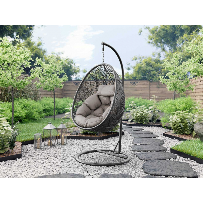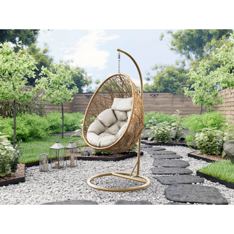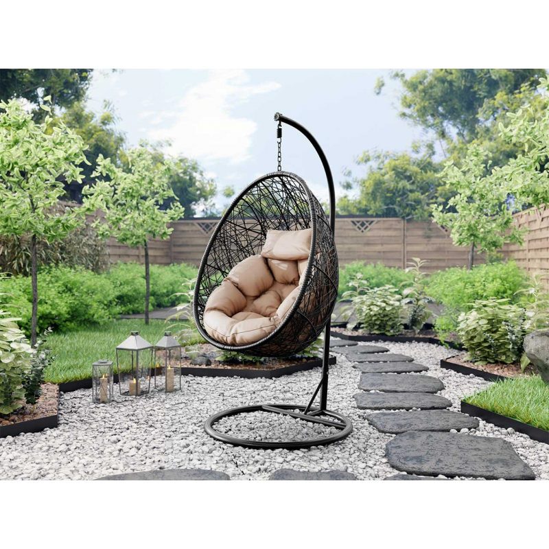 Byl vyroben z pevného kovového rámu, který zajišťuje bezpečné používání. Měkký a pohodlný polštář zahradního kokonu je perfektní pro čas strávený venku. Vše se snadno instaluje a čistí. Polyratanový výplet napodobuje vegetaci a má nespornou dekorativní hodnotu.