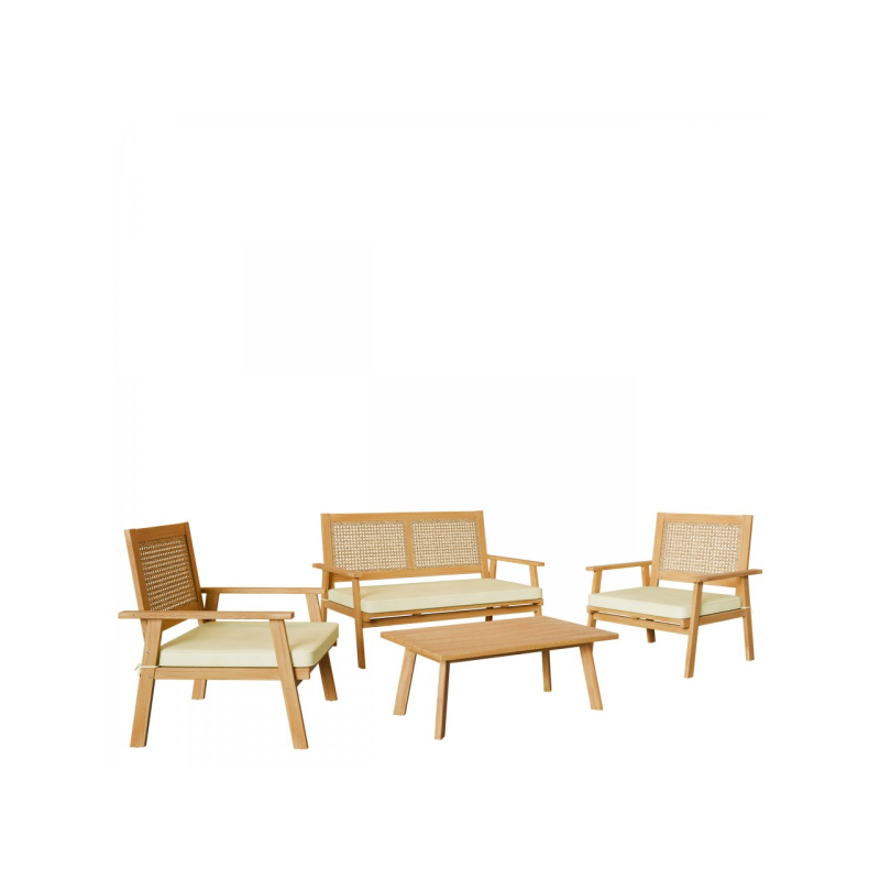 Akáciové dřevo dodává nábytku přirozený šarm a je velmi praktické. Polštáře vyrobené z vysoce kvalitní polyesterové tkaniny poskytují dodatečný komfort, díky čemuž můžete dlouhé hodiny volně odpočívat. Dřevěný zahradní nábytek zdůrazní kouzlo vaší zahrady!