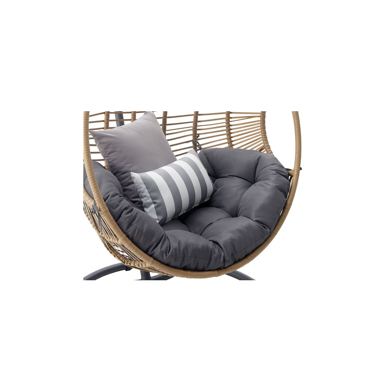 Závěsné křeslo se skvěle hodí na balkon, terasu nebo do pokoje. Poskytne vám neskutečný komfort po dlouhém dni nebo ráno u lahodné ledové kávy. Tato varianta je obohacena o měkký polštář, který slouží jako sedák a dva dekorační. Závěsné křeslo je nezbytností pro letní relax venku.