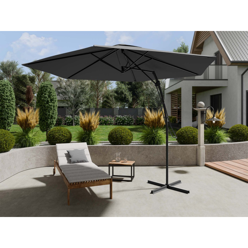 Praktické boční rameno vám umožní přesně umístit deštník, aniž by zabíral místo ve středu sedací plochy. Široká stříška optimálně pokrývá plochu nad lehátkem i soupravou zahradního nábytku a poskytuje optimální stín v kteroukoli denní dobu.