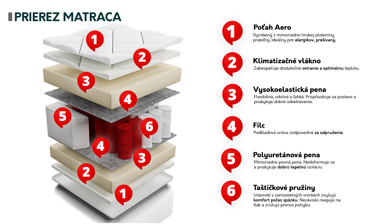 - Výška matrace: cca 19 cm