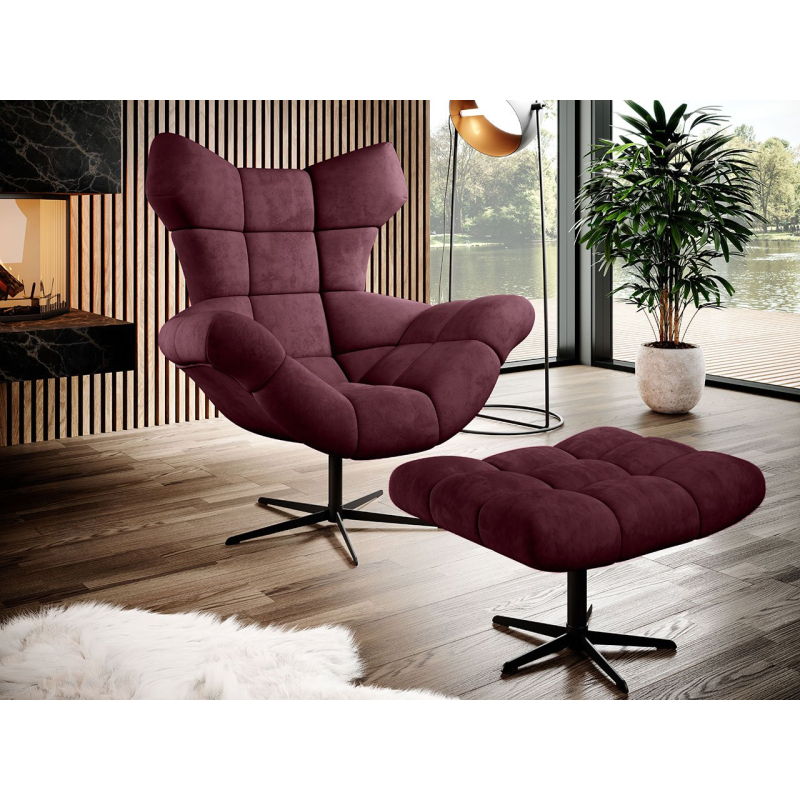 Křeslo Heimif je otočné o 360 stupňů, což zvyšuje komfort používání – polohu sedáku můžete pohodlně měnit podle svých potřeb bez jakéhokoli dodatečného pohybu nábytku. Základem křesla a podnožky je pevný, kovový rám.
