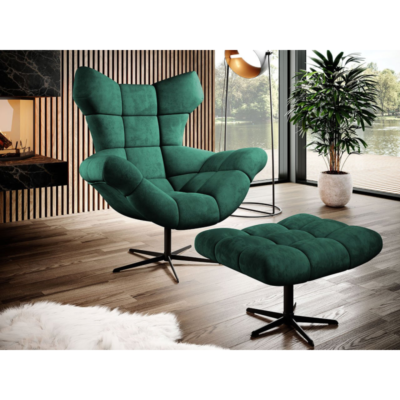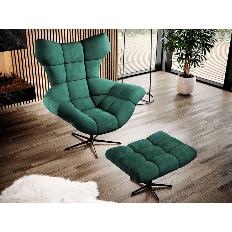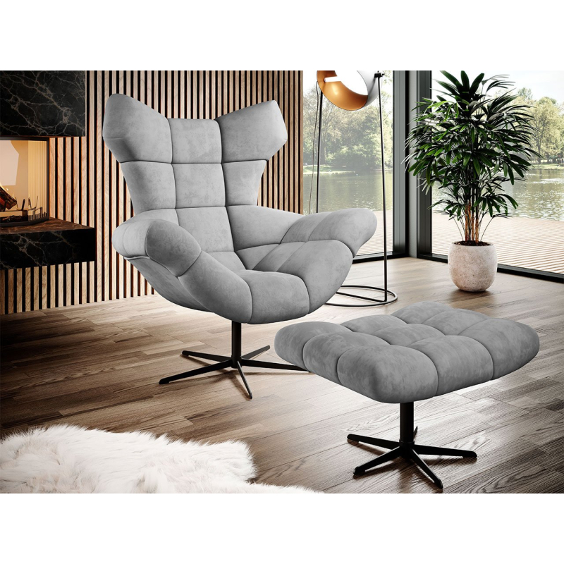 Měkký čalouněný sedák s ozdobným, geometrickým prošíváním působí velmi elegantně a luxusně. Křeslo s opěrkou na nohy má houpací funkci, která vám umožní odpočinout si po náročném dni a ukolébá vás ke krátkému odpolednímu spánku.