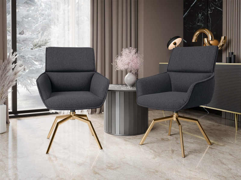 Jen málo z nás si umí představit domov bez pohodlného místa k sezení. Sada dvou otočných židlí Zabtis 3648/GL je skvělou volbou do bytu i kanceláře. Tyto modely nabízejí pohodlné sedátko upevněné na kovovém rámu zlaté barvy. Klíčovou výhodou těchto židlí je jejich funkce otáčení o 360°