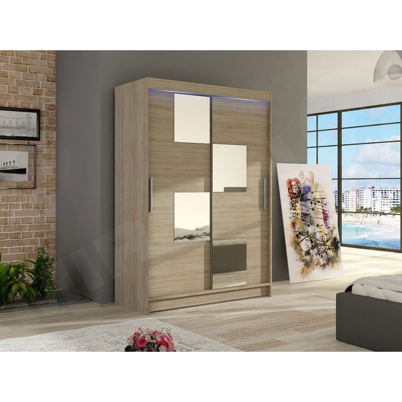 Na frontech dveří jsou charakteristická zrcadla, která osvětlují a vizuálně zvětšují místnost.