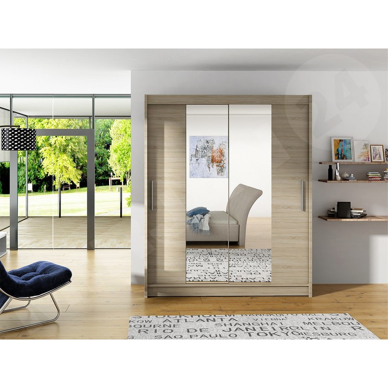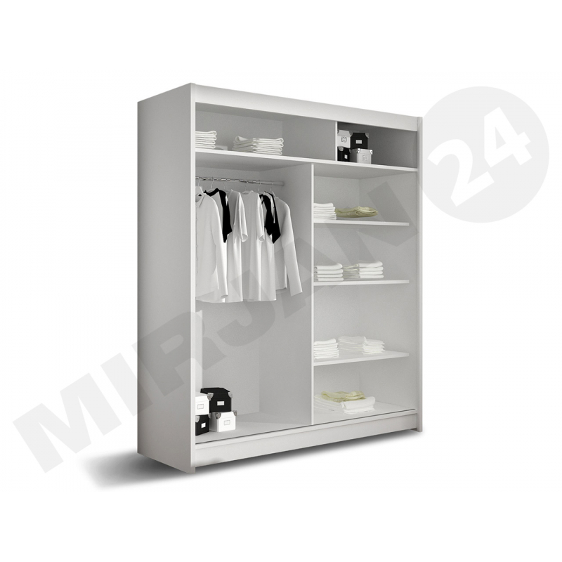 Další výhodou posuvné skříně Presto je její prostorný interiér, který se skládá z hlubokých polic a tyče pro věšáky.