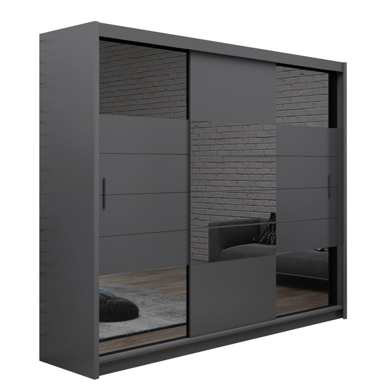 Šatní skříň Will 250 byla vyrobena v moderním a módním stylu. Ovlivňují to akcenty, jako je geometrický vzor vpředu, vyrobený ze zrcadel. Zrcátka v tomto vydání mají nejen dekorativní funkce, ale také praktické. Zrcadlo odráží více světla a zvětšuje místnost.