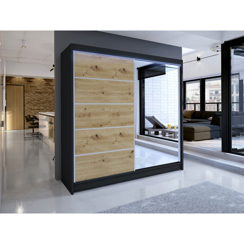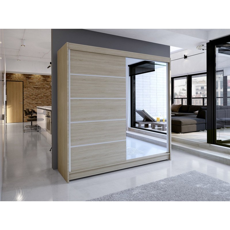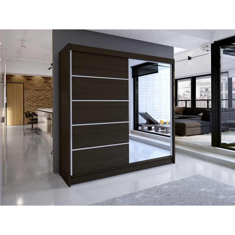 Posuvná šatní skříň Bar III je pokladem v náročném prostoru obývacího pokoje, ložnice a předsíně. Díky velké kapacitě a mimořádně funkčním řešením je skříň skvělá i ve skříni.