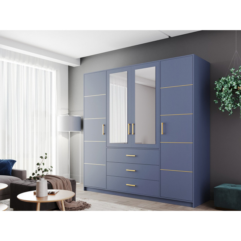 Stylová šatní skříň Lily podtrhuje půvab interiéru. Výrazné barevné provedení v kombinaci se zlatými detaily dodá interiéru obývacího pokoje, ložnice a šatny zvláštní nádech.