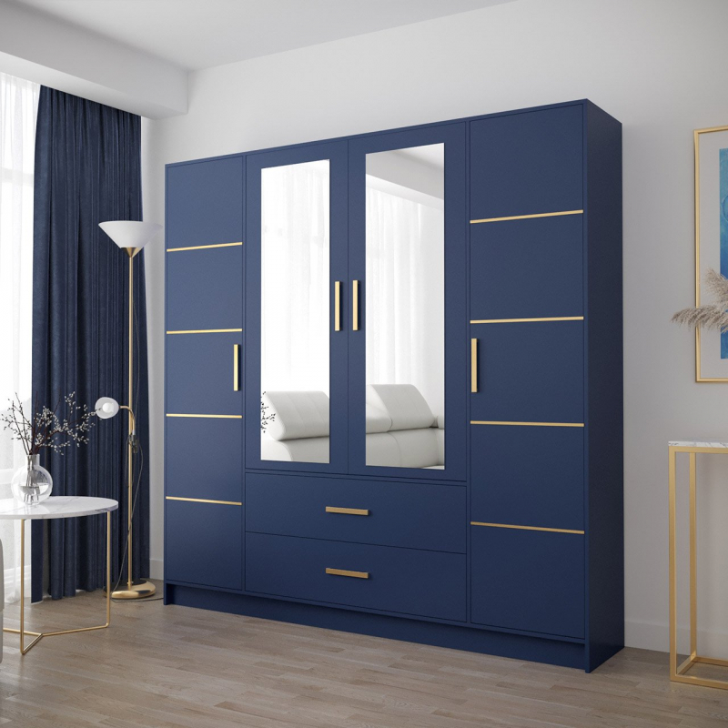 Caritas 201 je příkladem elegantní šatní skříně, která doplní styl šatníku, ložnice či předsíně. Charakter nábytku ovlivňují použité barvy a detaily v podobě úchytek a vložek zlaté barvy. Celek doplňuje velké zrcadlo na přední straně nábytku. Uživatelé šatníku Caritas 201 jej oceňují nejen pro jeho estetické kvality, ale také pro jeho funkčnost. Velká, čtyřdveřová šatní skříň nabízí prostorné police z vnější strany a tyč na šaty uvnitř. Ve spodní části jsou navíc dvě zásuvky.