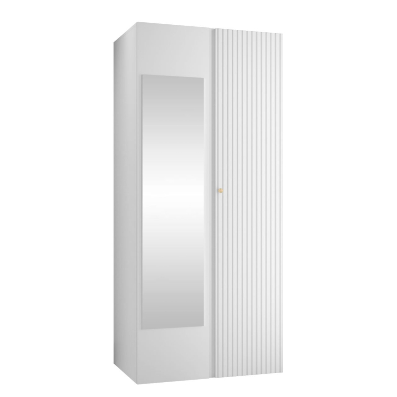 Frézovaná přední část je velmi estetická a dodává nábytku definovaný vzhled. V kombinaci se zlatými prvky se stane dokonalým doplňkem moderní předsíně. Vnitřek skříně ukrývá čtyři dvojité háčky, které poskytují prostor pro zavěšení svrchních oděvů. Své místo zde najdou také boty. Zrcadlová předsíňová skříň Towiro Slim 2D vnese do místnosti dokonalý pořádek a čistotu.