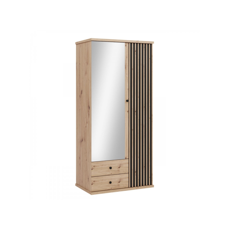Zrcadlová skříň Sigeren SG25 je prostorný kus nábytku, který doplní mnoho stylů interiéru. Je to perfektní volba pro klasickou ložnici nebo rustikální chodbu. Lamelová skříň nabízí dostatek úložného prostoru se šesti prostornými přihrádkami, věšákem na šaty a dvěma šuplíky. Její elegantní design doplňuje loftový i tradiční styl interiéru. Skříň má na přední straně velké zrcadlo, díky čemuž si snadno vyberete svůj každodenní styl.