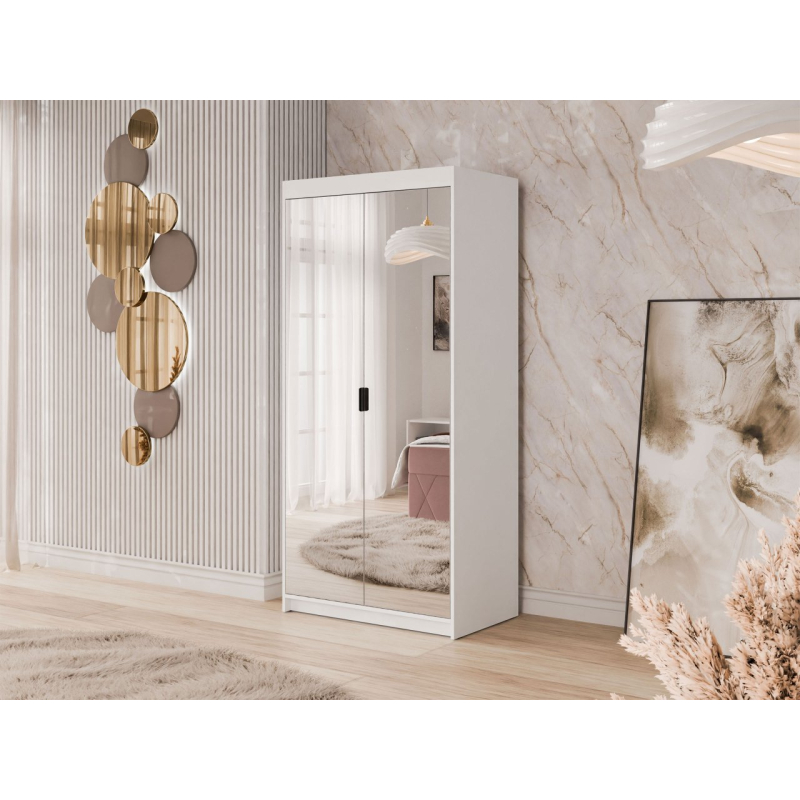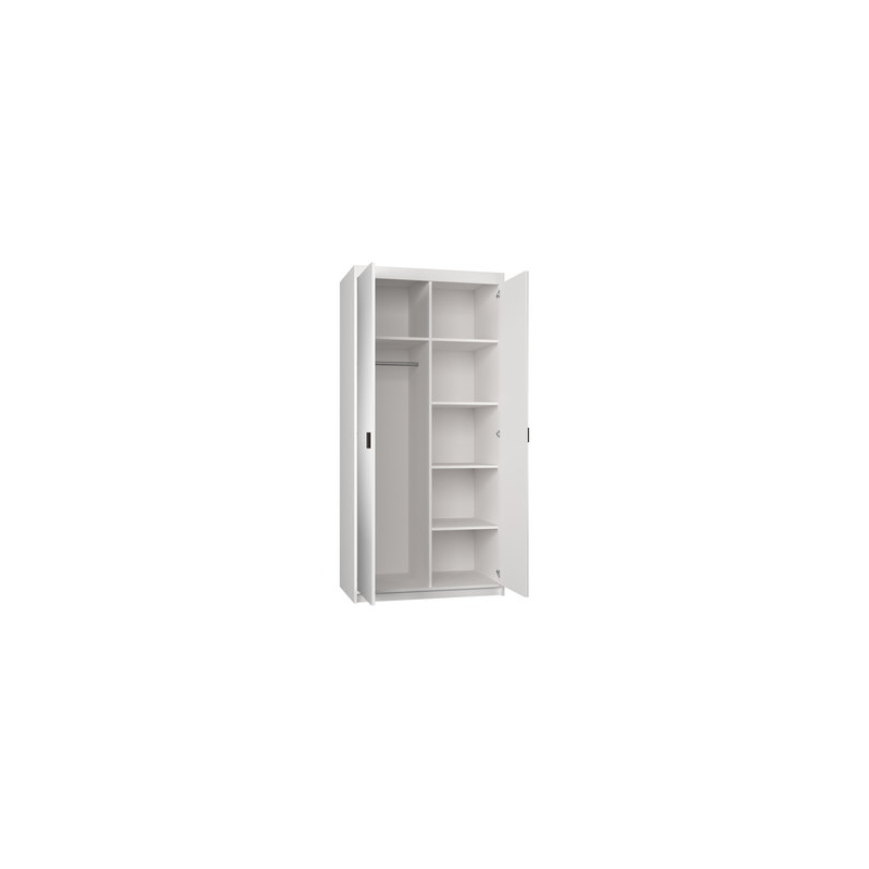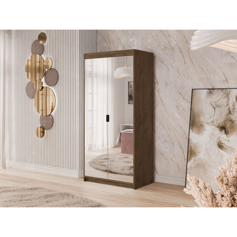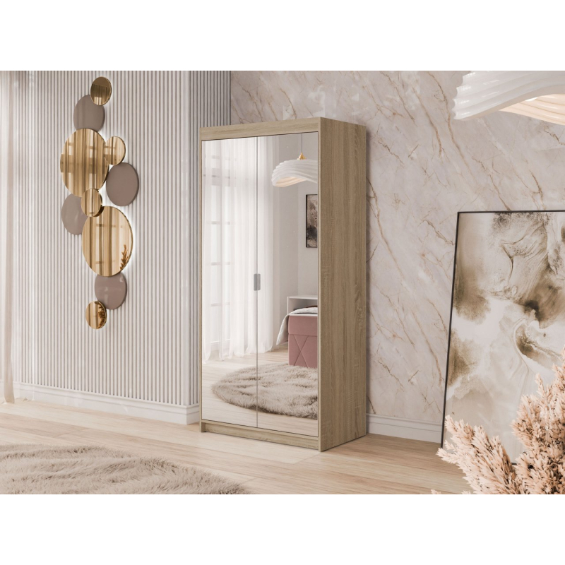 Dvoudveřová skříň Melen 2D se vyznačuje moderním vzhledem a praktickými řešeními. Pokud hledáte šatník, který se vejde do každého prostoru – model Melen s 2D zrcadlem je pro vás perfektní volbou. Odlišuje se prostorným interiérem s promyšleným uspořádáním polic a tyčí na ramínka. Tento interiér vám umožní pohodlně uložit oblečení a doplňky. Velké zrcadlo na dveřích dodá místnosti moderní charakter a také ji opticky zvětší. Je to také praktické – umožňuje vám to rychle zkontrolovat váš styl před odjezdem ven.