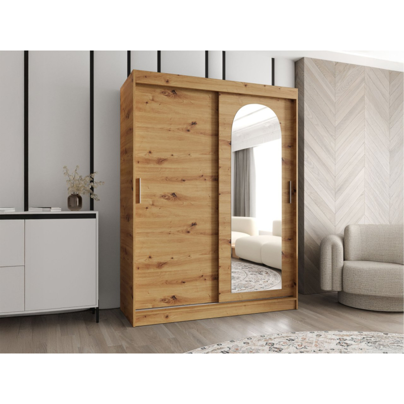 Promyšlený design posuvné skříně je korunován zrcadlem na přední straně. Má to mnoho výhod. Hlavní je schopnost zkontrolovat vzhled a provést případné úpravy. Skleněná tabule má navíc tu vlastnost, že opticky zvětšuje interiér. Model je k dispozici v několika barevných variantách, což vám umožní snadno jej sladit s atmosférou vašeho domova.