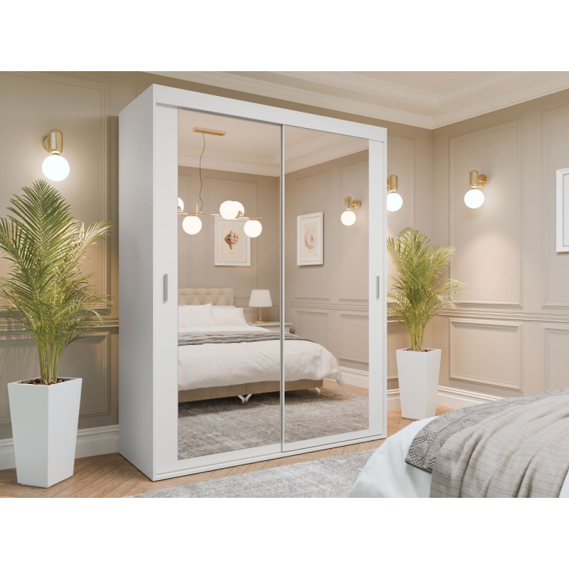Hledáte model, který vám pomůže zorganizovat interiér vašeho bytu? Objevte zrcadlovou šatní skříň Sitingo 160 V. Tento klasický bílý model dokonale vylepší jakýkoli interiér. Dokonale se hodí do jakéhokoli stylu interiéru a poskytne prostor pro oblečení a doplňky. Další velkou výhodou je velké zrcadlo, které vám umožní vidět váš styling a opticky zvětší dostupný prostor.