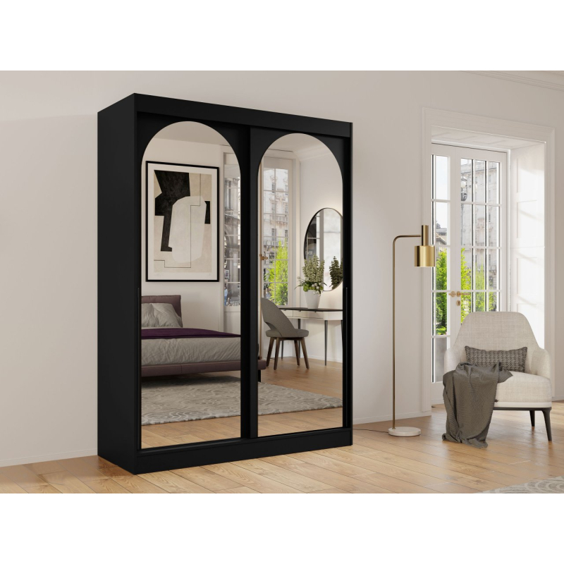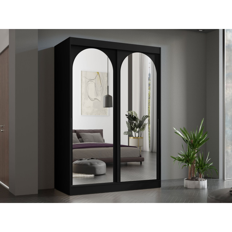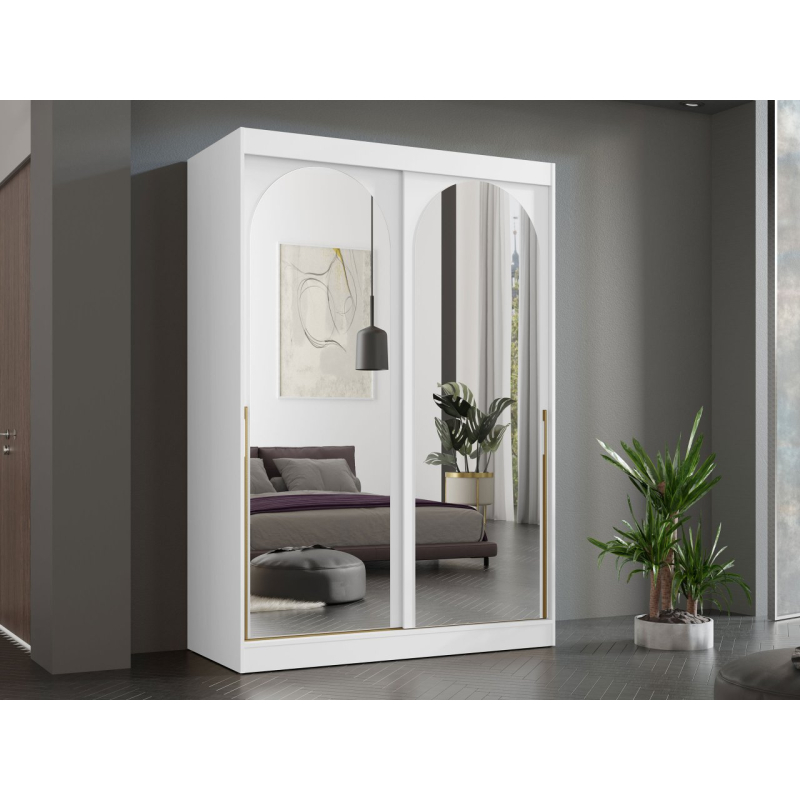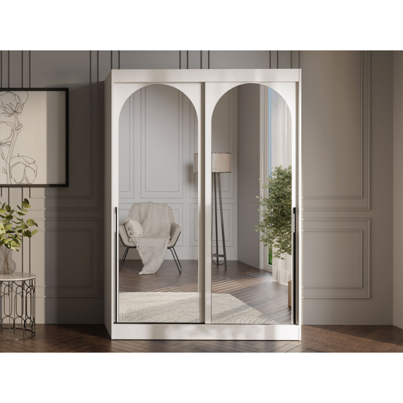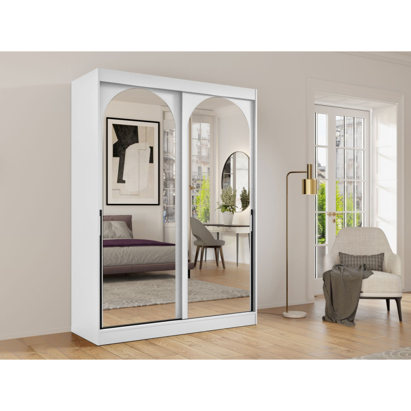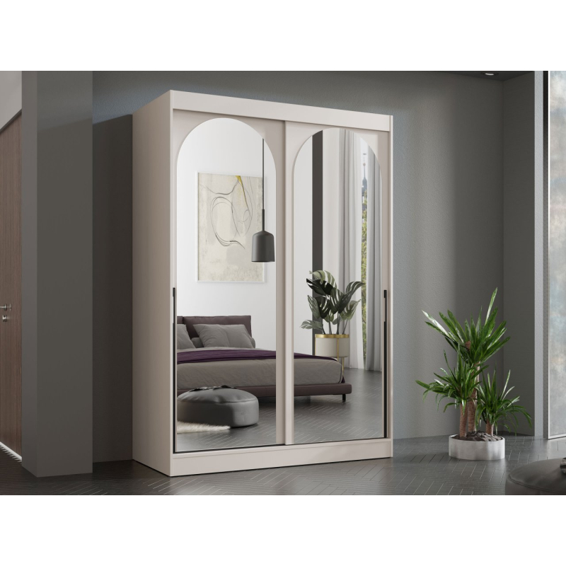 Minimalistický s moderním nádechem. Šatník Niwez 150 je elegantní model, který zaujme svým decentním designem, který je umocněn polooválními zrcadly.