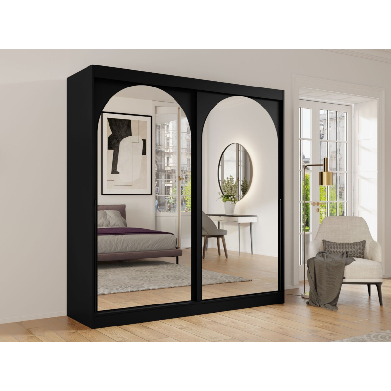 Získejte dostatek úložného prostoru s šatní skříní Niwez 200. Tento velkoryse dimenzovaný model nabízí mnoho praktických funkcí. Uvnitř naleznete tyč na šaty, košile a bundy. Četné police nabízí dostatek místa na halenky a další textilní doplňky. Velké zrcadlo dotváří celkový vzhled a opticky zvětšuje prostor.