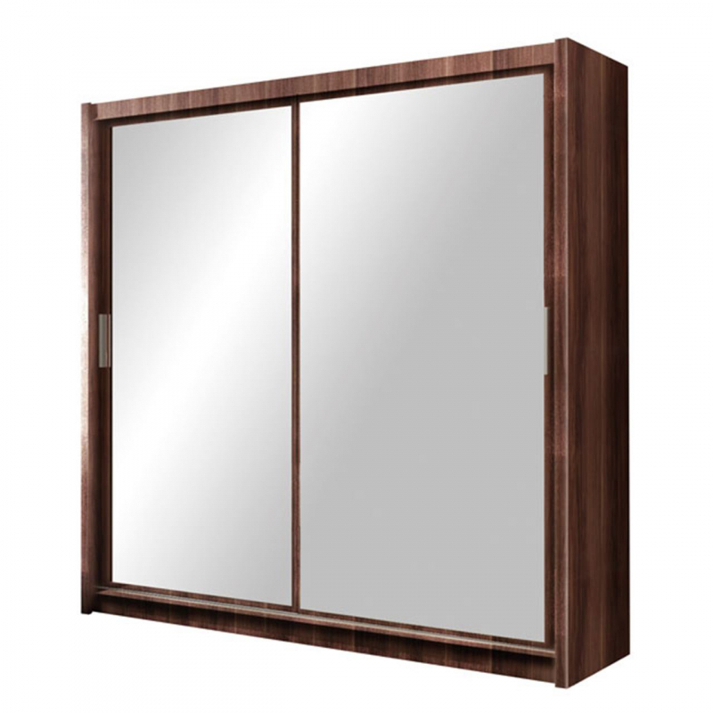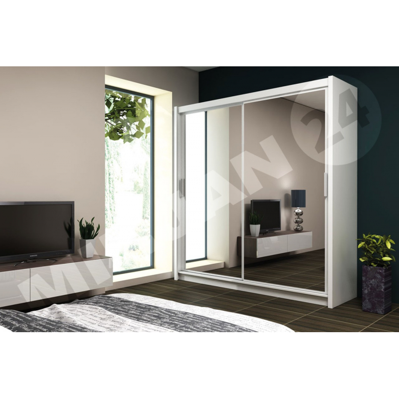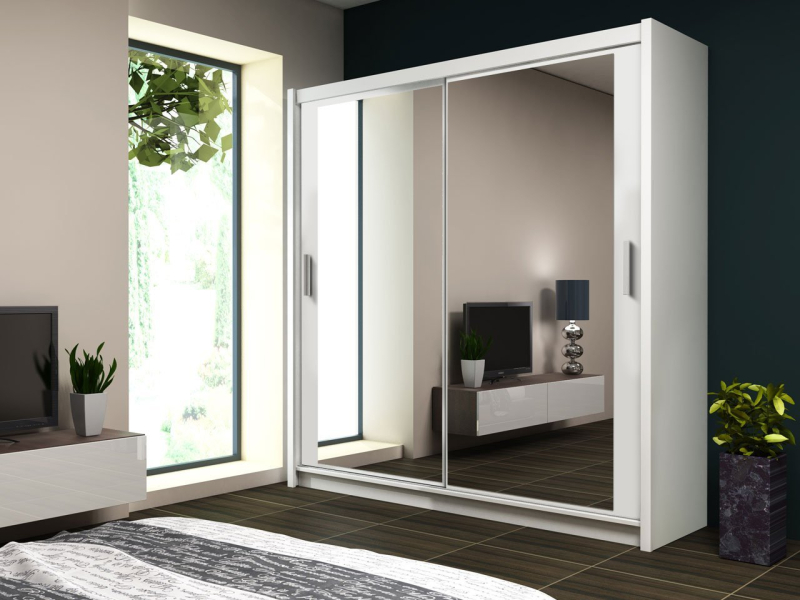 Klasická skříň Bercy. Velké zrcadlo na přední straně opticky zvětšuje interiér a umožňuje vám zkontrolovat se před odjezdem. Systém posuvných dveří zvyšuje pohodlí a umožňuje snadný přístup ke všemu vašemu oblečení. Vnitřní prostor skříně je vybaven prostornými policemi a věšákovou tyčí. Nábytek je vyroben z laminované desky, která je pevná a odolná. Šatník má rozměry 203 cm na šířku a 215 cm na výšku.