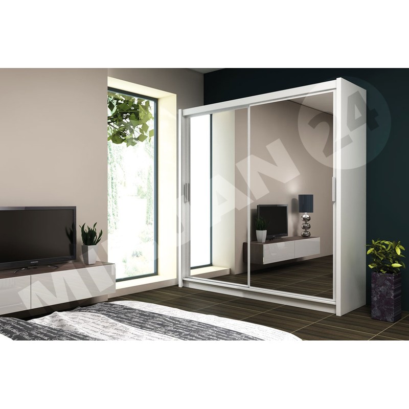 Synonymem pro tuto dvoudvéřovou šatní skříň Bercy je zrcadlo. A zrcadlo pokrývá opravdu celý povrch dveří. Vaše ložnice získá zcela novou dimenzi. Vy získáte možnost okamžitě vidět, co jste si oblékli a zda Vám to sluší. A to od hlavy až k patě! Co by si ženy mohly více přát? Ano, ještě velký úložný prostor. A ten získáte taky – skříň je uvnitř rozdělena na dvě části – policovou část a oddíl s šatní tyčí. Své místo tak najde každý kousek z Vašeho šatníku. Skříň nabízíme v elegantní bílé barvě.