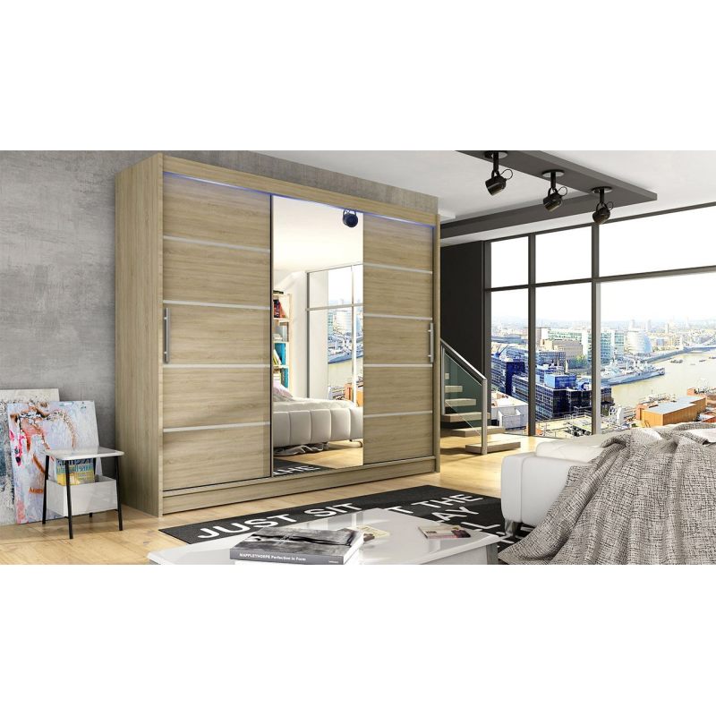 Dasto VI je skříň s posuvnými dveřmi, do které se jistě vejde celý váš šatník! Je vybavena prostornými policemi a tyčí na ramínka, což jistě usnadní segregaci oblečení. Skříňka je vyrobena z laminované desky s hranami upravenými ABS dýhou. To výrazně zvyšuje její odolnost, díky čemuž se budete moci těšit z jejího používání léta!