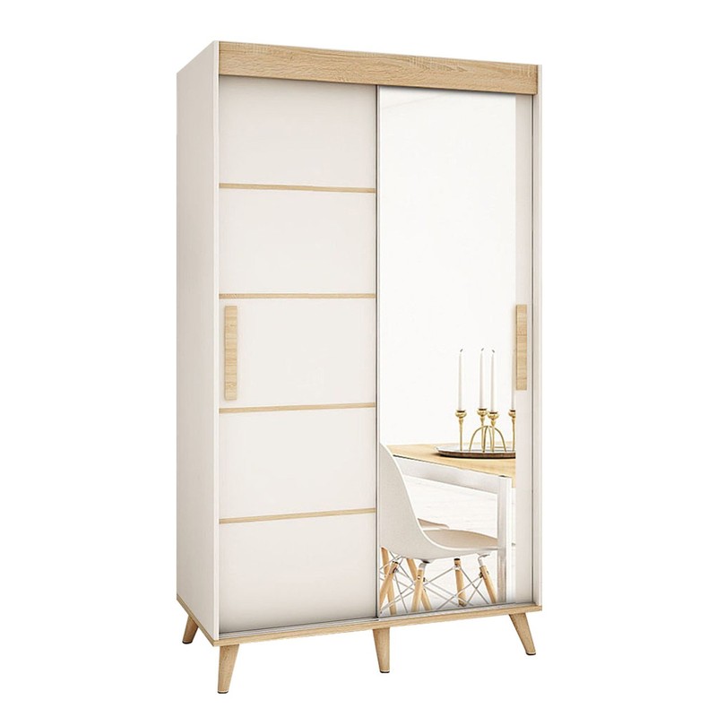 Skříň Bravo s posuvnými dveřmi je skvělým vybavením do obývacího pokoje, ložnice a šatníku. Módní barvy dveří a dřevěných nohou činí z posuvného šatníku ideální design skandinávského interiéru. Vzhled však není jedinou výhodou. Úložných prostor skříně je velmi prostorný a funkční.